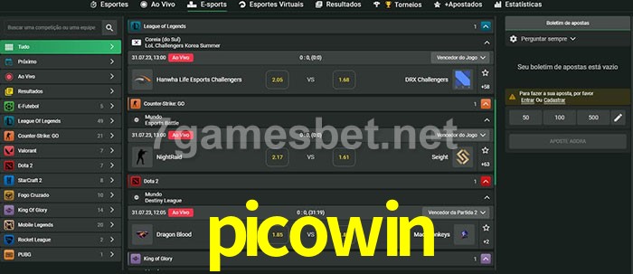 O picowin oferece uma grande seleção de opções de apostas em e-sports com probabilidades competitivas
